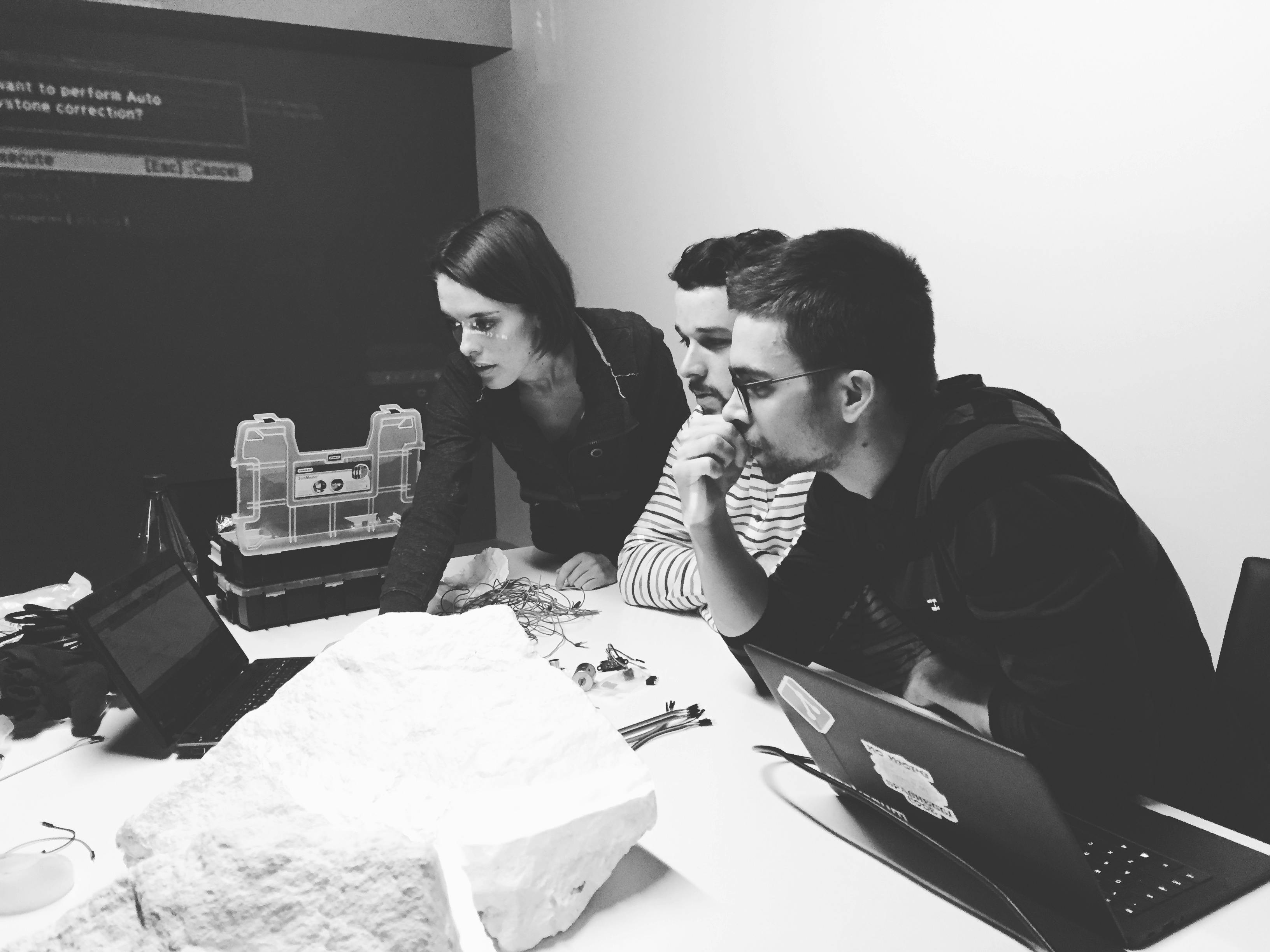 Le match était bon : Camille aime mettre en relation des phénomènes naturels avec les technologies inventées par l’humain. Avec son petit côté geek, elle partageait un langage commun avec Francis et Nicolas, développeurs attitrés au projet. Reste qu’une artiste qui débarque au bureau, ça remet en perspective notre façon de travailler.